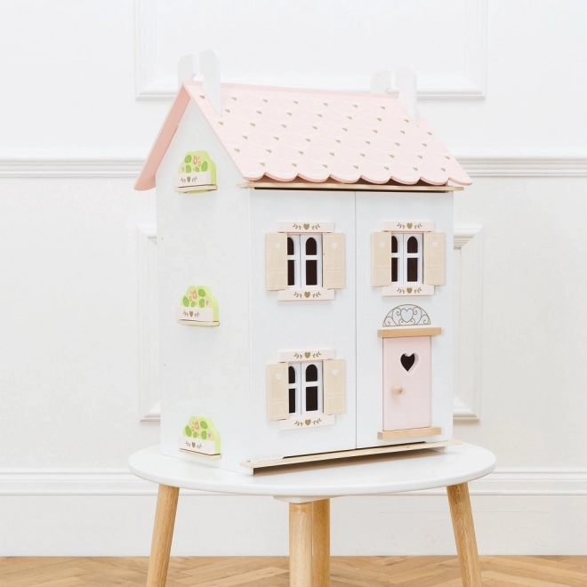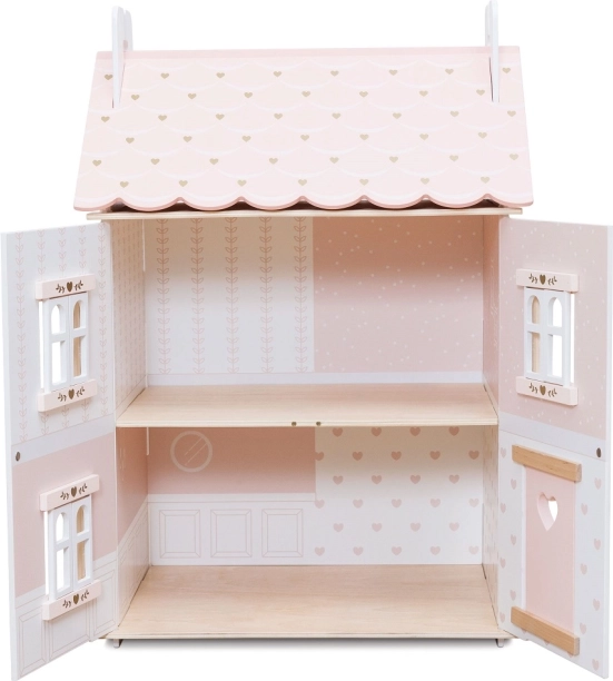 Velkommen til Rose Heart dukkehuset! Dette yndige legehus, som er fuldt malet og dekoreret i pastelfarver i sarte rosa og hvide nuancer, strækker sig over tre etager og venter bare på at blive udforsket. En realistisk legeting med trævinduer og skodder, der kan åbnes, samt en charmerende hoveddør, klar til mange timers leg. Inde kan børn udforske hvert rum udsmykket med traditionelle tapeter og søde illustrationer, som skaber en ægte hjemlig atmosfære. Åbn taget og afslør loftsrummet – ideelt til en ny tilføjelse til familien. Dette Blue Belle dukkehus er fremstillet af FSC-certificeret træ (træ fra skove, der forvaltes bæredygtigt) og er malet med vandbaserede, børnesikre farver. Legetøj med formål Alle Le Toy Van-legetøj er lavet med et mål – at holde længe. Designet med kærlighed af erfarne håndværkere ved hjælp af etiske metoder og bæredygtige materialer, som er mere skånsomme mod vores planet. Vigtigste egenskaber: etisk fremstillet af FSC-bæredygtigt træ testet efter de strengeste standarder malet med ikke-toksiske, vandbaserede farver dukker og møbler sælges separat inspirerer til fantasifuld leg træner koordination og finmotorik FSC-mærket og -certifikatet (Forest Stewardship Council) garanterer, at træet, som produktet er lavet af, ikke er fældet ulovligt og stammer fra skove, der forvaltes skånsomt eller på naturvenlig vis, hvor strenge miljømæssige og sociale krav overholdes. FSC-mærket på produktet betyder, at dit køb hjælper med at beskytte skovene og støtter skånsom, ansvarlig eller naturvenlig skovdrift, som gør vores skove mere stabile og sundere, med naturlig artsvariation og bedre modstandsdygtighed over for de negative følger af klimaforandringer. Mål: 43,5 × 35,5 × 65,5 cm Alder: 18 m+ Materiale: højkvalitets træ fra bæredygtige og fornybare kilder Hånddekoreret med miljøvenlige farver Udstyr til dukkehuset er ikke inkluderet i pakken