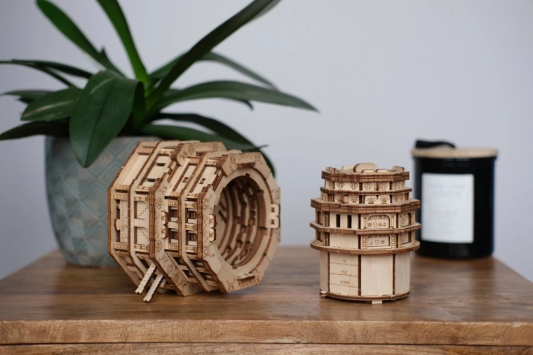 En del af sættet er et hemmeligt rum (6 × 3,7 × 3,7 cm), hvor du kan gemme en ledetråd, en besked eller en lille gave – perfekt til en original overraskelse. I æsken finder du en billedvejledning og en QR‑kode med hints, så du ikke går i stå for længe. Takket være den robuste konstruktion kan puslespillet efter gennemførsel deles med venner og familie.