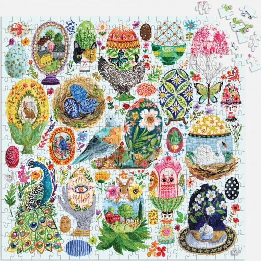 Et elegant og glædeligt farverigt puslespil med motiv af håndmalede påskeæg, som vil begejstre både børn og voksne. Kvalitetsprint og solid pap sikrer en behagelig læggeoplevelse og lang holdbarhed.
