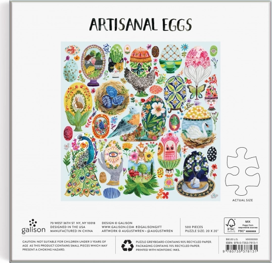 Nyd afslapning med farverig fordybelse – dette puslespil med motiv af malede påskeæg byder på 500 brikker, er fremstillet af genbrugsmaterialer og trykt med ikke‑giftige blæk.