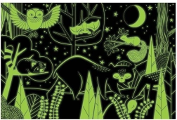 Dette unikke puslespil består af 100 brikker, der, når de er samlet, viser små dyr som en bjørn, en hjort, en ugle, en vaskebjørn, en egern og en flagermus på en skovlysning. Når det bliver mørkt, ikke blot lyser billedet, men det ændrer sig også stjerner dukker op, og natdyr bliver levende. At samle disse puslespil er ikke kun sjovt men også en fantastisk gave pakket i en æstetisk boks.