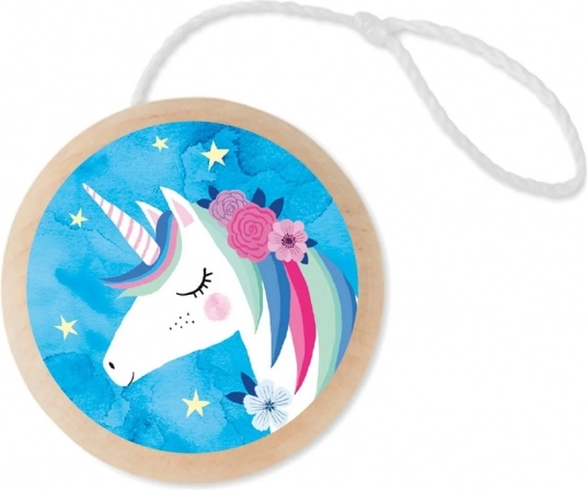 Dette klassiske yo-yo er lavet af træ og har smukke illustrationer af enhjørningen på hver side. Det er ideelt til små børnehænder og bringer glæde og fascination. Yo-yo'en hjælper børn med at udvikle deres fingerfærdighed og koordinationsevne, hvilket er afgørende for deres motoriske udvikling.