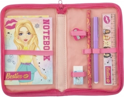 Gå i skole med dette stilfulde Besties skolepenalhus, som indeholder alt, hvad du behøver: lineal, blyantspidser, kuglepen, blyant, viskelæder og notesbog.