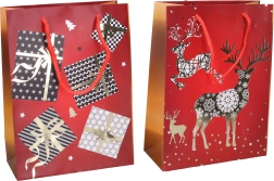 Stilfuld julegavepose i størrelse S med målene 18 × 24 × 8,5 cm, ideel til mindre gaver. Tilbyder 4 festlige motiver, robust udførelse og hurtig og elegant gaveindpakning uden besvær.