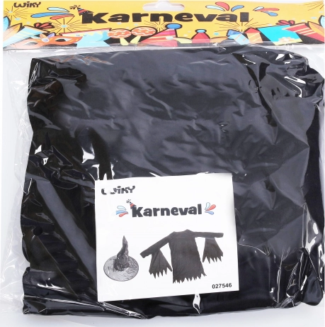 Stilfuldt fastelavnskostume til piger, der gør det nemt at forvandle sig til heks til både maskebal og Halloween. Sættet består af en kjole med lange ærmer og en hat, som tilsammen skaber et imponerende, men behageligt outfit. Ideelt til børn fra 6 år.