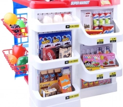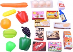 Sættet indeholder forskellige realistisk udseende plastmadvarer, som børnene kan udforske og bruge i deres imaginære butik.