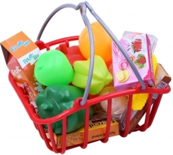 Praktisk rød kurv til at bære små varer, hvilket lærer børn at organisere og transportere indkøb.