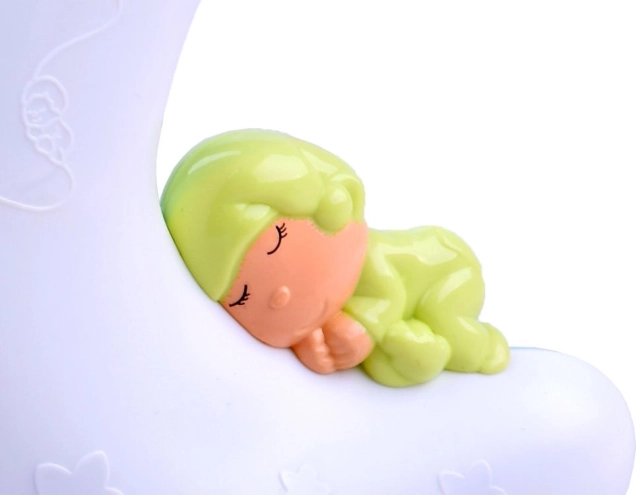 Denne magiske natlampe er ikke kun et smukt tilbehør til børneværelset, men også en uvurderlig hjælp i den daglige putterutine. Lampen byder på blide og skiftende farver, der skaber en hyggelig atmosfære og beroliger barnet. Med Bluetooth-funktionen kan du afspille enhver lyd og melodi fra din telefon, inklusive beroligende naturlyde.