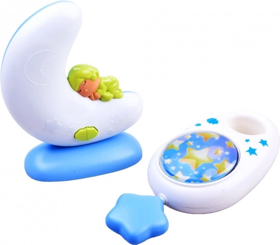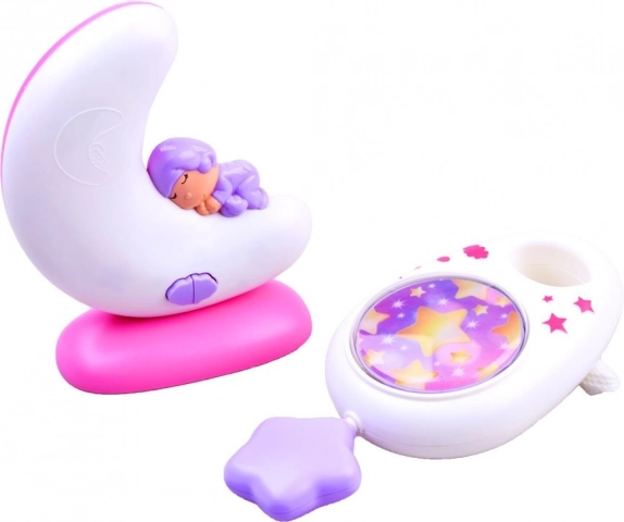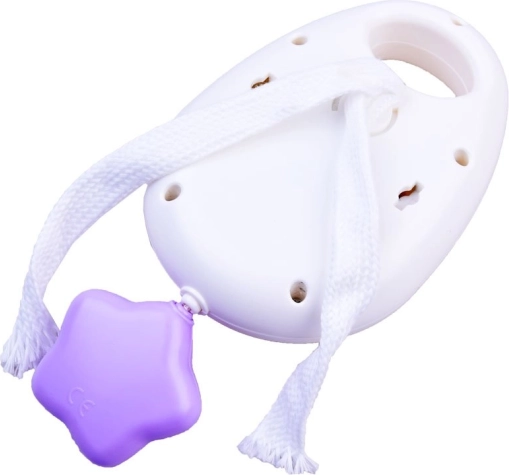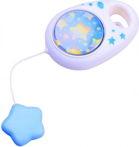 Der medfølger også en mobil spilledåse, som let kan fastgøres på barnevognen, tremmesengen eller autostolen. Træk blot i snoren, og spilledåsen begynder at spille en beroligende melodi, mens de roterende stjerner fanger og beroliger dit barn.