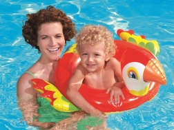 Denne farverige oppustelige papegøje-ring giver børn masser af sjov og tryghed i vandet. Takket være holdbart PVC og sikkerhedsventil er den pålidelig, mens det legende udseende motiverer små svømmere til vandaktiviteter. Materialet er UV-bestandigt og tåler saltvand.