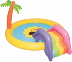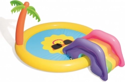 Forvandl haven til en mini-vandpark! BESTWAYs vandlegeplads til børn med motiv af en smilende sol indbyder til sjov og afkøling på varme dage. Tilslut blot haveslangen, så skaber den indbyggede sprinkler en forfriskende fontæne. Den aftagelige rutsjebane i farverigt design begejstrer små eventyrere, mens den bløde og stærke vinyl giver komfortabel og sikker leg.