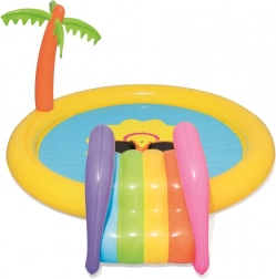 Gør sommerdagene lysere med denne farverige oppustelige vandlegeplads fra BESTWAY med rutsjebane og integreret sprinkler. Takket være det bløde, men holdbare vinyl, den og vandfontænen til haveslange tilbyder den en sikker og sjov vandattraktion for små børn. De rummelige mål 237 × 201 × 104 cm og den stabile konstruktion er ideelle til sommerleg i haven.