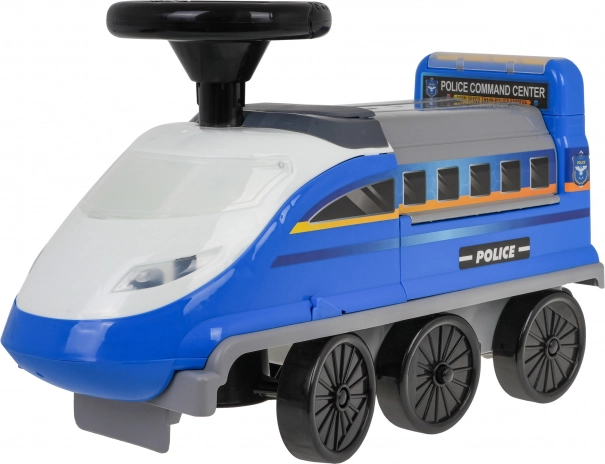 Det interaktive kørende tog med politiparkering er ideelt til børn fra 3 år. Dette innovative kørende produkt er lavet af højkvalitets, ikke-giftig plast, som sikrer lang levetid og sikkerhed for børn. Toget er udstyret med seks hjul, hvoraf de to forreste er drejelige, og under sædet findes en sammenklappelig politiparkering med mange bevægelige elementer, inklusive rutsjebaner, elevator og barrierer, som kan indstilles efter behov.