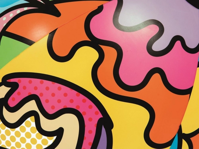 Bolden er dekoreret med farverige og glade motiver, der bringer glæde og tiltrækker opmærksomhed.