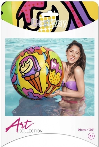 Bold med en diameter på 91 cm giver både små og store masser af sjov i frisk luft. Leg med bolden udvikler koordinationsevne og forbedrer motoriske færdigheder, hvilket kun er gavnligt for helbredet. Bolden er lavet af kvalitets vinylmateriale med sommerlige, glade og farverige grafik, der helt sikkert vil tiltrække opmærksomhed fra andre feriegæster.