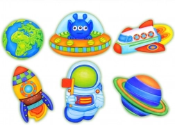 Med de medfølgende forme og farver laver børnene unikke magneter med motiver af raketter, planeter og astronauter. Skabningen er enkel og sjov.