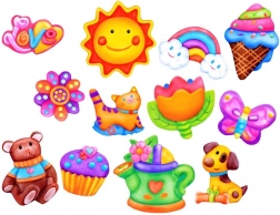 Fra sol og regnbuer til katte og bamser – detaljerede forme og stærke farver giver flotte og glade magneter.