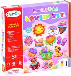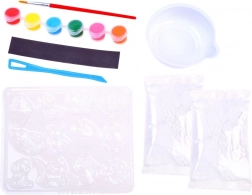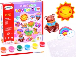 Dette DIY-sæt giver børn skaberglæde fra den første omrøring af gips til den sidste penselstrøg. Formene omfatter populære motiver som sol, blomster, sommerfugle, regnbuer, is, cupcakes, bamser, kander, katte og teksten LOVE. De færdige kreationer påsættes magnetbånd og kan pynte på køleskab, opslagstavle eller enhver metaloverflade.
