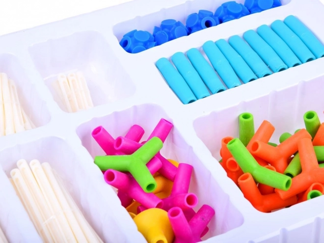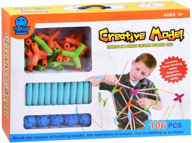 Takket være de 106 dele kan børn bygge et uendeligt antal konstruktioner, som stimulerer deres kreativitet og rumlige forestillingsevne.