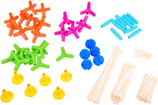 4M Sticks byggesættet indeholder 106 farverige dele, som børn nemt kan sætte sammen og skille ad. Det er designet, så børn kan eksperimentere med forskellige former og strukturer, hvilket stimulerer deres kreativitet og logiske tænkning. Sættet er lavet af kvalitets- og sikre plastmaterialer, der sikrer lang holdbarhed.