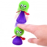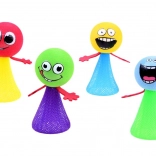 En glad, fjedrende nisse, der ligner en badmintonfjer, vil snedigt overraske dig. Tryk nissens fingre mod jorden og se, hvor hurtigt den skyder i vejret!