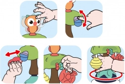 De farverige og bevægelige dele af legetøjet understøtter børns sensoriske og motoriske udvikling.