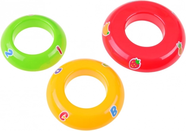 At stable de farvede ringe efter størrelse hjælper børn med at træne finmotorik, logisk tænkning og farvegenkendelse.