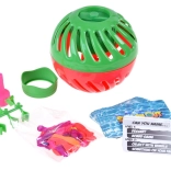 Let og robust kugle med mekanisk timer holder vandballonen inde og udløser en sprøjt præcis i det øjeblik, tiden løber ud.