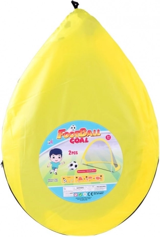 Praktisk sæt til både små og store fodboldspillere indeholder 2 pop op-fodboldmål, bold med pumpe, pløkker til fastgørelse i jorden og transporttaske. Takket være øjeblikkelig opsætning og nem transport kan du spille fodbold når som helst og hvor som helst på en plan overflade.