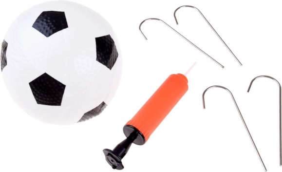 - Komplet udstyr: 2 mål, bold, pumpe, pløkker, taske