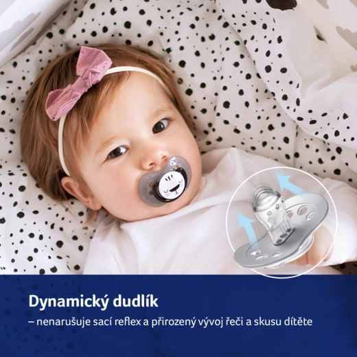 Suttespidsen af heterogene silikone-lag forlænges og trækker sig sammen efter sutterytmen, understøtter sund udvikling og deformerer ikke ganen.