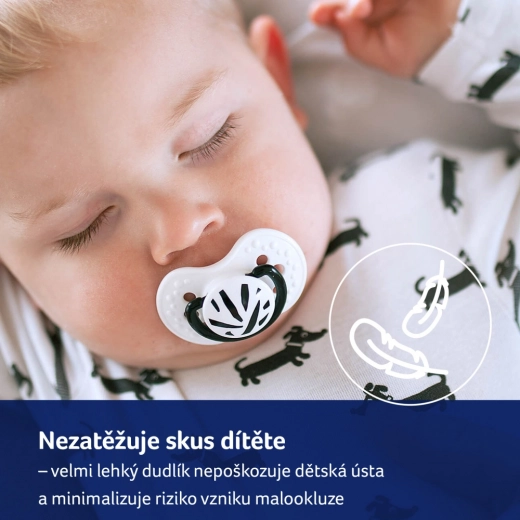 Den flerlagede silikonespids forlænger og trækker sig naturligt sammen efter sutterytmen, understøtter sund udvikling af gane, bid og tale og minimerer bide-refleksen.