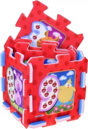 Delene forbindes som et puslespil og kan bruges til at skabe en flad legeområde, men også 3D-former (klodser eller små huse), som øger underholdningen og udvikler den rumlige forestillingsevne. Måtten er let at vedligeholde – det er nok at tørre den af med en fugtig klud. Den skridsikre overflade bidrager til større stabilitet under leg.