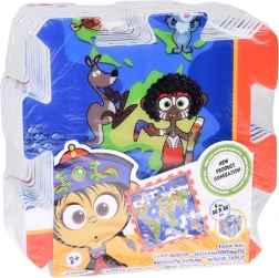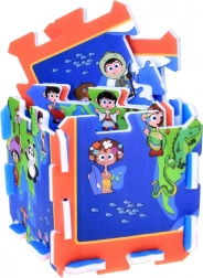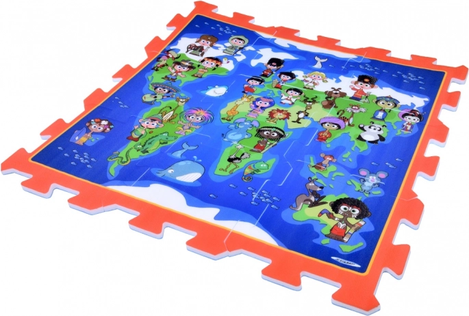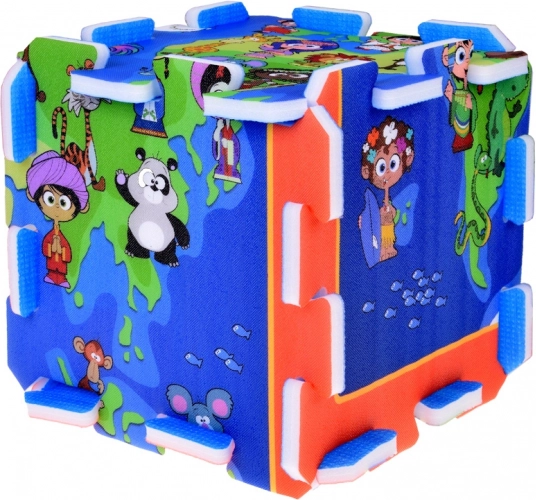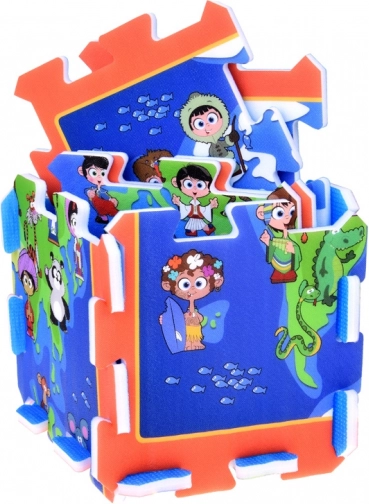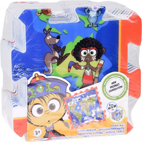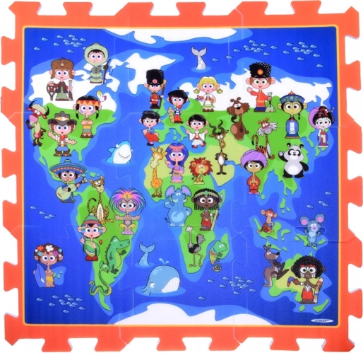 Lege- og træningsmåtte af sammenlåsende dele giver en komfortabel og støddæmpende overflade til leg, øvelser og afslapning. Billeder af børn og dyr fra hele verden motiverer til at opdage og lære gennem leg. Delene kan nemt samles til en plan måtte eller 3D-former som terning og lille hus.