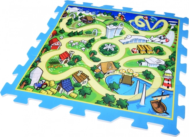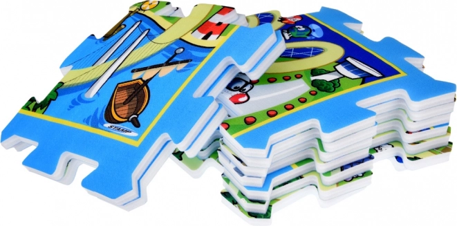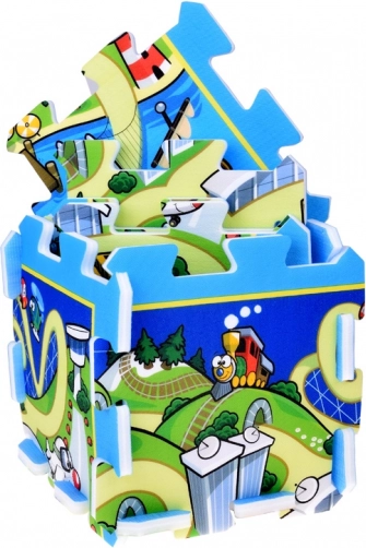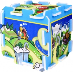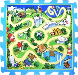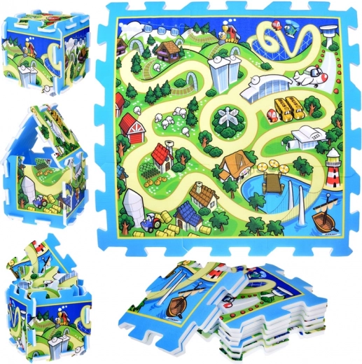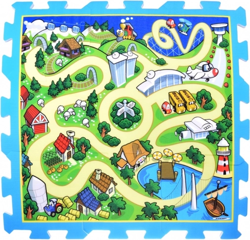 Dette skumunderlag/puslespil med by- og vejmotiv forvandler ethvert rum til en sjov trafikal legezone. Brikker af blød, men robust skum skaber en stødabsorberende og sikker overflade til at sidde, kravle og tage de første skridt. Børn kan køre med små biler på vejene, lære farver og former og udvikle fantasien.