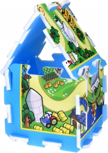 Hver brik har en låse- (puzzle) kant for hurtig samling uden at glide. Af underlaget kan man desuden bygge en 3D-kube eller simple små huse, så legen skifter fra flad til rumlig. Velegnet til børneværelse, terrasse og have.