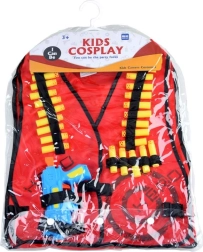 Denne cosplay-pakke indeholder en rød taktisk vest med løkker til patroner, en blå børnepistol og et sæt bløde skumpile. Vesten er lavet af slidstærkt tekstil med justerbare elementer, så den passer godt til børn cirka 3–8 år. Hele sættet er let, behageligt og ideelt til dynamisk leg og træning af præcision.