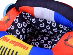 Den søde børnelænestol inspireret af en brandbil er ideel som den første støtte ved indlæring af at sidde. Blød fyldning og blid overflade er skånsom mod barnets hud, mens brede sider og stabilt ryglæn hjælper med at holde korrekt position og en følelse af sikkerhed.