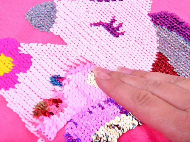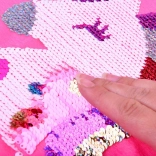 Dobbeltsidede pailletter gør det muligt at ændre farve og giver puden et legende element.