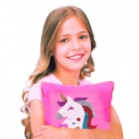 Det kreative sæt til at lave en pude med enhjørning og pailletter er det ideelle valg for ethvert barn, der vil lave en smuk dekoration til sit værelse. Indeholder alt nødvendigt til at fremstille en pude med blødt materiale og dobbeltsidede pailletter, der skifter farve.