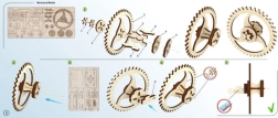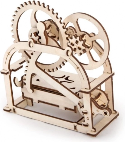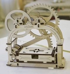 Den mekaniske æske fra UGEARS forener traditionelle materialer og smart bevægelse. Takket være et raffineret gearsystem er det nok at trykke på sidehåndtaget, hvorefter låget åbner med et behageligt klik. I pakken finder du to frontpanel‑varianter – med og uden udskæring – alt efter anvendelse.