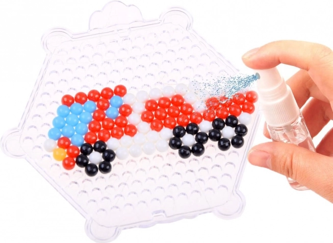 Arrangér perlerne, spray med vand og lad dem tørre – en enkel og sikker proces for børn.