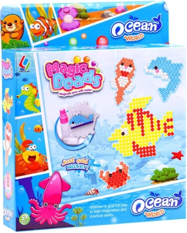 Med dette kreative sæt Magiske perler kan børn lave fantastiske billeder og 3D-figurer. Det indeholder skabeloner med enkle mønstre, som gør det nemt at komme i gang. Når alle perler er placeret, skal de blot sprayes med vand og tørre. Børn kan således hygge sig med at skabe originale projekter og udvikle deres kreativitet og finmotorik.