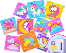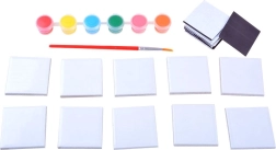 Sættet indeholder alle nødvendige komponenter til at lave ti magneter – fra fliser til farver og pensel. Børn kan dermed straks fordybe sig i den kreative aktivitet.