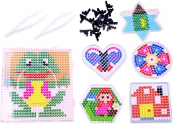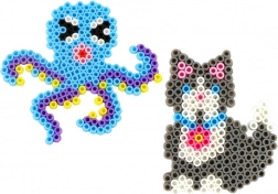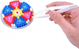 Flere farvede poser samt forskellige former på perleplader og skabeloner gør det muligt at skabe dyr, geometriske mønstre og figurer. Kreativiteten kender ingen grænser.