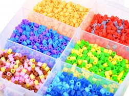 Den solide boks med rum holder perlerne pænt sorteret og sikkert opbevaret. Et praktisk håndtag gør det let at tage med på farten og i skole.