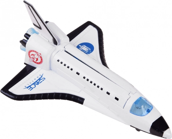 Dette rumskib er enhver lille rumelskendes drøm. Med en kombination af metal og plast tilbyder det realistiske lys- og lydeffekter, som aktiveres ved hjælp af en knap placeret under den åbne del af maskinen. Når du trykker på knappen, vil du høre lyden af raketmotorens arbejde, og det røde lys i cockpittet vil tændes.