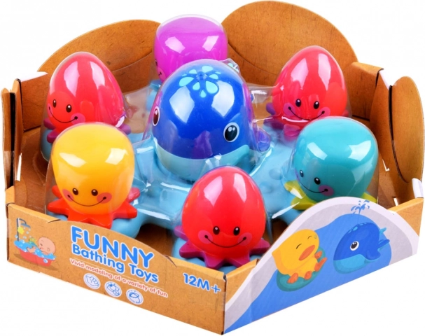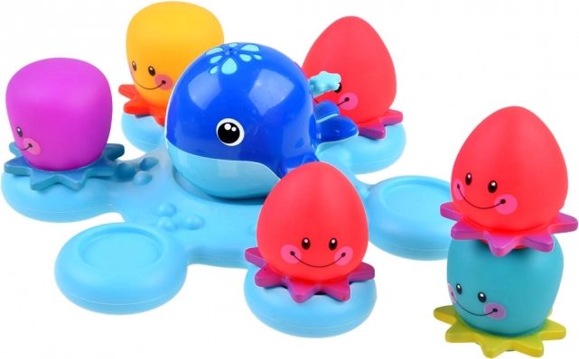 Dette attraktive badesæt kombinerer leg og læring. Børn kan se, hvordan hvalen flyder, sprøjter vand, og hvordan de farverige blæksprutter bliver på vandoverfladen eller glatte overflader. Sættet udvikler øje–hånd-koordination, understøtter sanseoplevelsen og forvandler den daglige hygiejne til et glædeligt ritual.