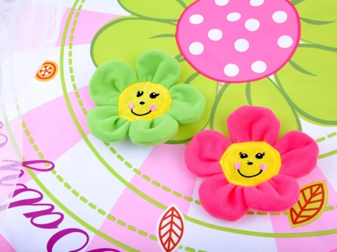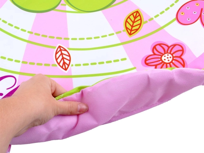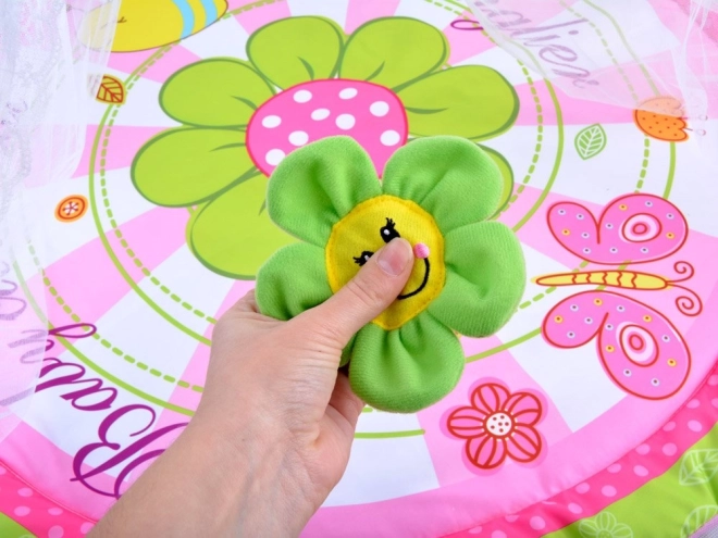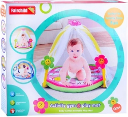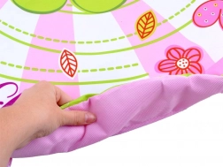 Børnemåtten er designet til at skabe et sikkert og komfortabelt sted for dit barn. Dens klare farver og bløde materiale er ideelle til daglig leg eller afslapning. Måtten er udstyret med buer med blomster og myggenet, der beskytter mod insekter og øger børns interesse.