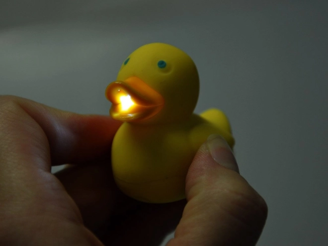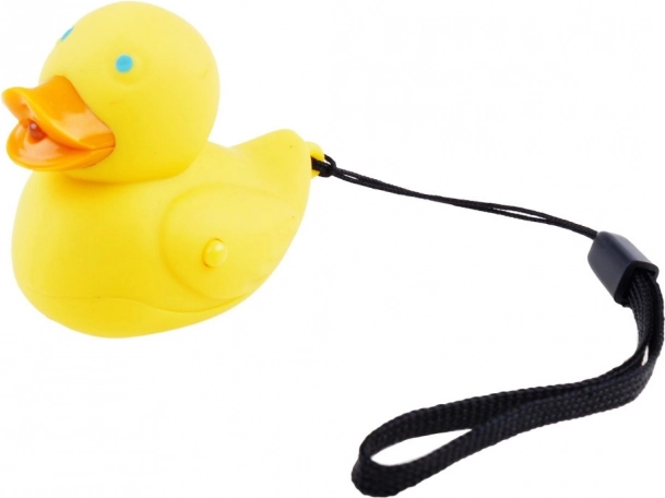 Sød nøglering formet som en lille and, der ved tryk lyser og laver en glad lyd. Ideel til nøgler, rygsæk eller penalhus – lille, let og iøjnefaldende, glæder både børn og voksne.